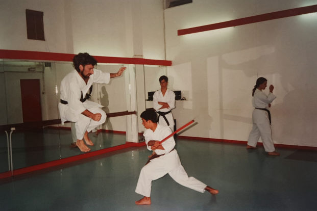 Em dezembro de 1992, por indicação do Sensei João Carreiro, inicia-se a história do Dojo Ginásio Clube da Póvoa (Póvoa de Santa Iria) na ASKP e da minha, enquanto instrutor. Um pequeno Dojo com caraterísticas diferentes por estar sediado num Ginásio, onde as horas disponíveis para o treino eram estanques e a sala era (e é) comum para todas as inúmeras aulas de grupo que ali se desenvolvem. Cedo percebemos que para este Dojo crescer a dinâmica fora do local de treino teria de ser agregadora. Para além de um local de treino (figura-1), com todas as tradições e procedimentos formais, o Dojo transformou-se numa família alargada. Vinte e oito anos depois, três dos karatecas fundadores – Joel Neves (3ºDan), Bruno Correia (3ºDan) e Marco Fernandes (1ºDan) – continuavam a treinar regularmente...pelo menos até à chegada da Pandemia.