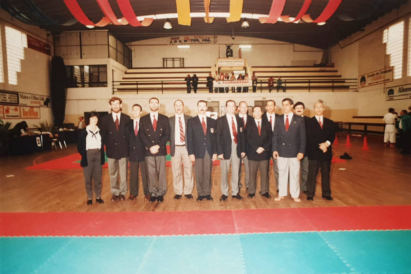 This Dojo has been my home and its history can be divided into three periods. An initial period (6-8 years) of great institutional dynamics, coinciding with a great dynamics of the mother house (figure-2), where we participated in all activities and competitions from north to south of the country (figure-3a) and, above all, where they trained with great intensity and combativeness. We had national champions in Kumite - Liliana Madaleno, currently an instructor and member of the board - and deputy national champion of Kata - Renato Silva; in the competitions of our house many of the podiums were ours (figure-3b) and our presence in the international stages was constant (Figure 3c). Early I started to participate in the arbitration of karate Shotokan (ASKP and LPKS, figure-4), having been followed by Luís Silva (3ºDan), current instructor of the house with title of coach, habitual presence as judge and referee in the competitions Shotokan, regional traineeship instructor with JKA qualifications in the 3 domains.